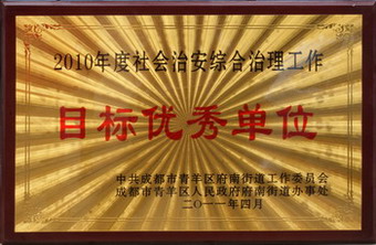 近日,成都市青羊区人民政府府南街道办事处下发第30号文件,通报表彰2010年度平安建设和社会治安综合治理工作目标优秀单位,我公司翠堤雅筑榜上有名。