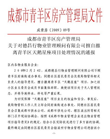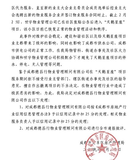 上一条:关于对鑫天禹物业管理有限公司涉及中铁双龙湾项目“卖口子”事件处理情况的通报 下一条:成都市物业管理协会关于开展第三届“诚信入户、和谐物管、共建家园”活动的通知