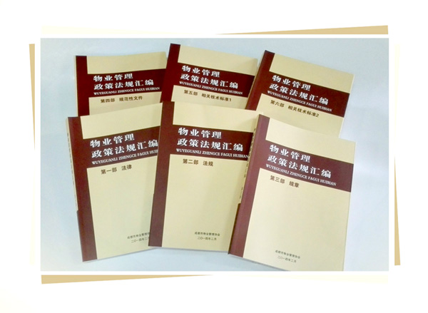 新版《物业管理政策法规汇编》包括法律、法规、规章、规范性文件、相关技术标准1、相关技术标准2等共六册。