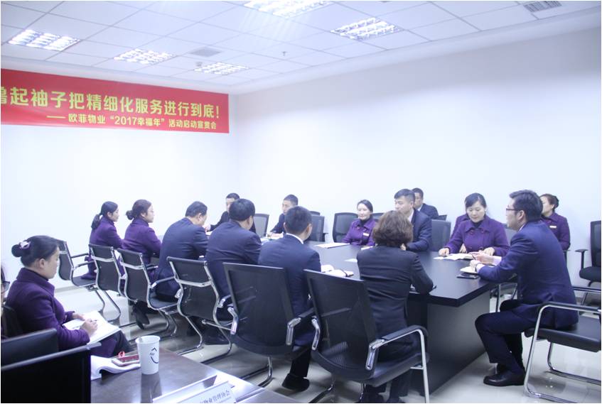 会议中,欧菲物业公司总经理陈曦对成都欧菲物业“2017幸福年”活动相关工作做出了重要部署:
