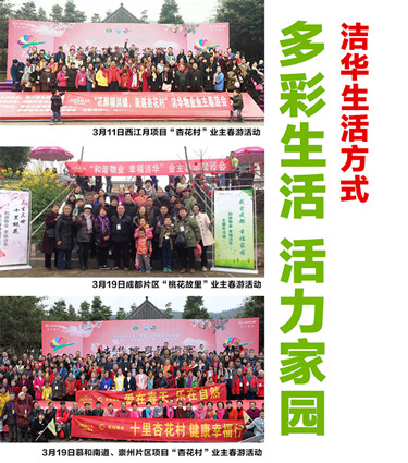 “借问酒家何处有?牧童遥指杏花村”——青白江福洪镇杏花村, 3月11日、19日,洁华业主在杏花村欣赏漫山遍野的杏花,品尝农家美味菜肴,享受河边垂钓,远离城市的喧嚣,感受春天的气息。