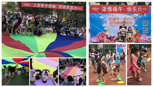 为庆祝六一儿童节,在各项目部,洁华物业精心准备了丰富多彩的亲子活动,其中有节目表演,趣味运动等。
