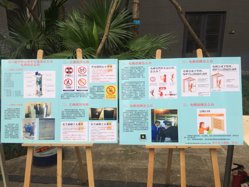 演练前,锦东庭园项目部在小区内以展板的形式进行了防火防盗、电梯安全、消防安全知识宣传,并通过设置业主留言板、发放消防宣传单、放映电梯安全知识宣传视频等方式积极引导业主参与到安全防范工作中来,营造了良好的活动氛围。本次演练共进行了治安防范、电梯困人、防汛处置和消防灭火四项内容。演练中,参与人员反应迅速,操作规范,动作标准,业主参与度高,反映良好。