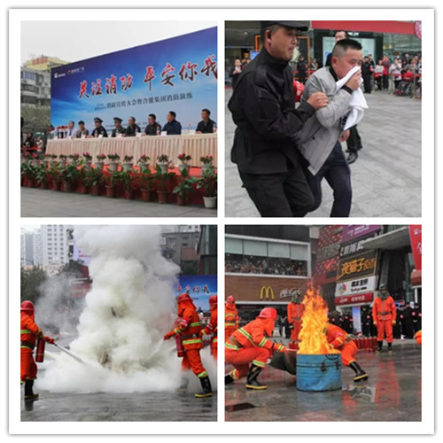 为全面提升公司员工、商家、业主的消防安全意识,增强自我保护能力,掌握应变和逃生技能,检验我司消防设施运行能力、突发应急事件反应能力以及疏散处理能力。11月5日,合能物业携手青羊区消防大队、社区、街办、派出所等有关部门在合能·新城市广场举办了以“关注消防 · 平安你我”为主题的大型消防演练活动,邀请新城市广场商家代表、各社区业主代表等共计600人次参与。