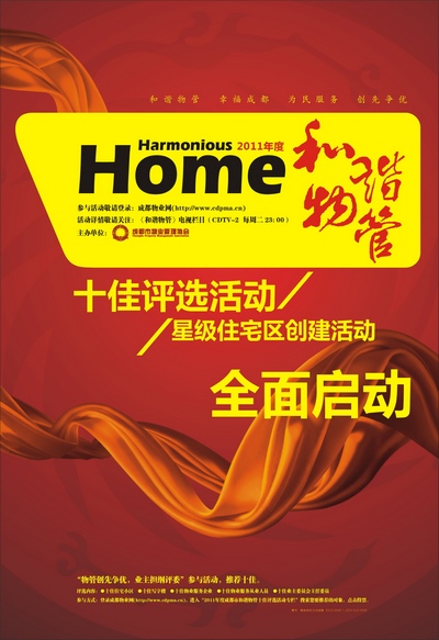 根据我市物管行业深入开展“为民服务创先争优”活动的有关要求,为配合2011年度成都市和谐物管十佳评选活动、和谐物管星级住宅区创建活动的开展,协会印制了“和谐物管”宣传海报,请各物业服务企业即日起到协会秘书处领取,并张贴到物业管理区域的显著位置。数量有限,领完截止。