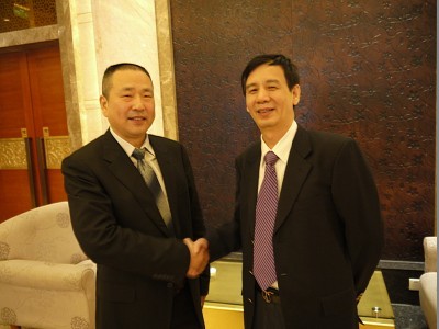 金房物业总经理闻涛(左)与戴德梁行中国区总裁刘伟杰(右)