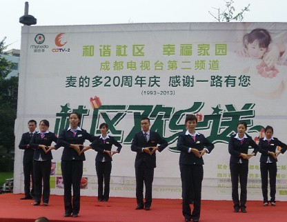 10月26日,成都电视台第二频道(原33频道)在罗浮广场录制《社区欢乐送》节目。作为此次活动的协办方,成都罗浮物业服务有限公司为观众奉献了手语舞《感恩的心》,赢得了在场观众热烈掌声。罗浮物业十分重视社区文化建设工作,每年的春节、六一、中秋、重阳都会组织形式多样的社区活动,希望通过这些用心的服务举措,来满足社区居民的精神文化生活,努力共创和谐美满的品质生活。