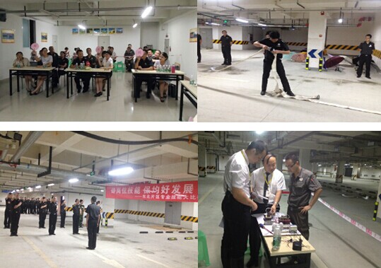 下午13:30,实操比拼开始。秩序、客服、工程在四期负二楼停车场进行,环境在四期5栋单元楼进行,整个比拼过程充分展现了各专业口的水平和态度。秩序的军事演练震撼人心,交通指挥手势娴熟,消防作业动作迅速;客服人员沉着应答,态度温和,耐心处理投诉问题;工程同事现场绘制电机正反转控制图,并立马进行接线工作;环境部进行洗地机操作、刮玻璃比拼,外包方大姐也加入其中。经过4个半小时的激烈比拼,最后二十四城一期夺得全能团队冠军,同时也夺得专业口技能冠军,各专业口也分别评出了知识竞赛冠军和实操榜样。
