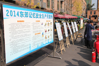 在宣传周期间,东郊记忆服务处组织各部门员工进行系列培训,并于2014年11月6日下午,组织园区各单位、商家代表及物业公司员工150余人,特邀成都市五进消防宣讲中心高永才主任在东郊记忆成华小礼堂,从“消防四个能力建设、报警、灭火、逃生、疏散、救援、安全隐患排查、灭火器的使用及消防应急事件的处置”等多方位地给大家上了一堂生动的消防课。