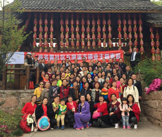 位于金堂的五凤古镇,街道顺山顺河而建,弯弯曲曲,高低错落。青瓦屋顶,木板门头,石板街面,一切都是那么古色古香。这里的精彩不在于做了什么,而是在于这是个让人觉得“活在当下”的理想地点。靠在溪畔,业主们自发形成了“对歌两派”,踏平山路唱山歌,撒开渔网唱渔歌,你唱一句,她对一句,歌声飘荡在空中,给春日的空气注入了一抹别样的新鲜。当然,舞蹈队的“美少女”和合唱队的叔叔阿姨们也不甘示弱,伴着歌声开始了一段歌伴舞。一曲《映山红》曲对舞,让鸟儿也停住了脚步,倚在树梢享受这曼妙的表演,这一刻,一切都融入到清新唯美的自然里。最美不过夕阳红,温馨又从容。