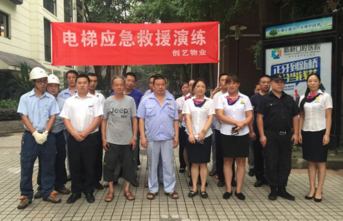 为了响应成都市物业管理“安全年”为主题的活动,针对近期新闻媒体强调电梯安全的热点,成都创艺物业中华园物业服务中心专题组织电梯维保单位、全体员工以及小区业主进行了一次电梯救援应急演练。