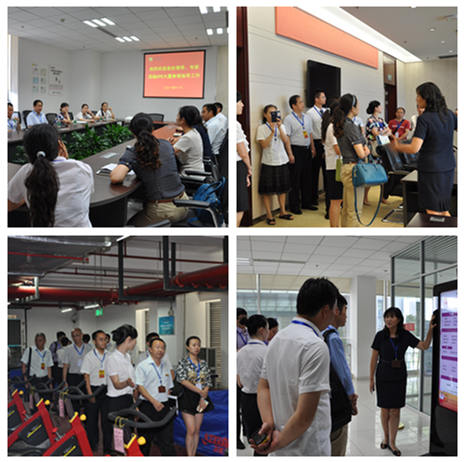 CPE大厦物业项目经理彭敏英陪同参观了33层会议室、电梯机房、17层CPE业主办公区、15层避难层、练兵区、空调机房、配电房、消防泵房、监控室以及附楼餐厅,并对物业项目的硬件配置、管理模式、组织构架、人员配备、管理及服务特点等问题向参观人员进行了详细讲解。
