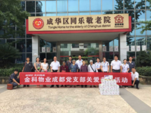 2015年8月1日上午8点整,怀揣着殷殷真情,盛满敬老助老的爱心,金科物业四川分公司总监及党支部书记带领着客服人员、维修人员、保洁人员,载着精心准备的慰问品抵达成华区同乐敬老院,开展了一次“阳光行动、关爱老人”的志愿活动。此举受到敬老院领导和全体老人的热烈欢迎。