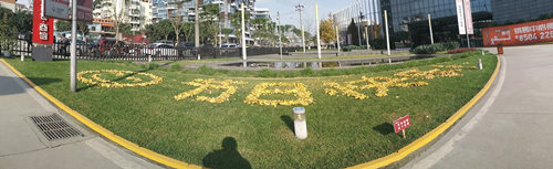 一进201岗的大门大家就会在左手边草坪上看到用银杏叶摆出的笑脸和“节日快乐”。这些银杏叶都是园区银杏树掉落下来的,我们把它们收集起来,巧思构想,在园区进出必经之路上增添了别样的风采,也给业主们带来了一丝惊喜。上下班途中不少业主朋友们都驻足观看,合影留恋!大厅及四五楼门上也贴满了圣诞节的贴画,使得圣诞气氛更加浓烈。走进大厅大家会看到一个大大的雪屋和圣诞树,雪屋的门前还站着可爱的麋鹿一家,还有雪娃娃,铁搭等装饰物。把小彩灯一开,整个雪屋和圣诞树都闪着五颜六色的光芒,好看极了!当然最重要的环节就是由我们员工扮演的两位圣诞老人给业主朋友们派礼物啦!我们平安夜和圣诞节这两天会给业主朋友们发送圣诞小礼物。凡是经过的业主都兴奋的跑来领取苹果、糖果等小礼品,场面很是热闹呢!在带给大家惊喜的同时,也让业主朋友们感受到了我们物业的用心。