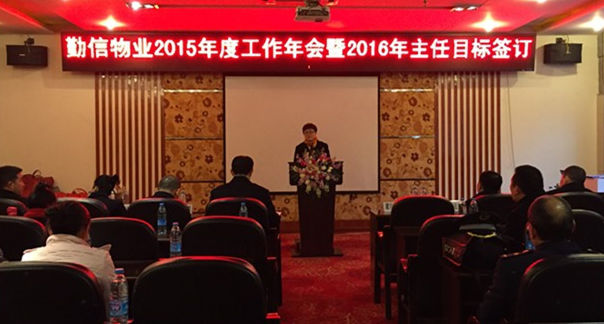 2016年1月29日,《勤信物业2015年度工作年会暨2016年主任目标签订》在三圣乡刘家花园顺利召开。公司领导层对一年来的工作进行了总结:年初公司提出了 “节能降耗,增收节支”的工作决策,围绕全年的工作目标,克服困难,开拓进取,圆满地完成了各项工作任务。 并宣布了2015年各项经营指标完成情况、年度重点工作完成情况。2016年公司下达的任务指标,并围绕任务目标达成进行了2016年的工作部署。