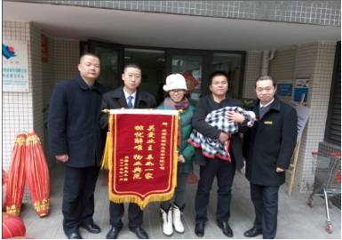 2016年2月1日,尚郡小区业主吴女士与家人带着刚满月的小宝宝来到成都银都物业服务有限公司尚郡物业服务中心,将一面写着“关爱业主、亲如一家、排忧解难、物业典范”的锦旗亲自呈送,对尚郡物业服务中心工作人员对他们的帮助表示感谢,并饱含深情的讲述了事情经过。
