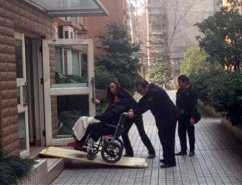 白马寺小区1、2、4三栋楼所有单元都没有残疾人通道。2栋2单元业主胡大爷2014年搬来小区居住,由于老人家行动不便,每天进出都必须坐轮椅,而单元门口没有残疾人通道的情况给老人家带来了极大的不便。照顾老人家的保姆也已近60岁,所以胡大爷的出行成了问题。民兴物业白马寺物业服务中心在了解到这一情况后立马采取措施,施以援手,帮助胡大爷解决出行问题。