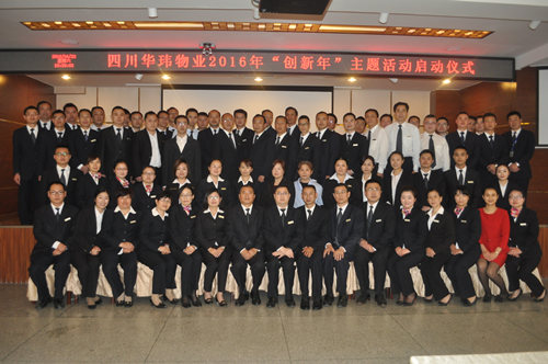 华玮物业2016“创新年”正式启航啦!根据“成房发〔2016〕32号 成都市城乡房产管理局关于开展物业管理“创新年”主题活动的通知”(附件)文件精神,为响应文件精神并贯彻落实“创新年”具体事项,提升物业管理的整体实力和服务水平,公司于2016年4月23日在成都职业技术学院高新校区举办了华玮物业2016“创新年”主题活动启动仪式,来自公司各项目的管理人员及公司管理班子成员100余人参加了此次会议。