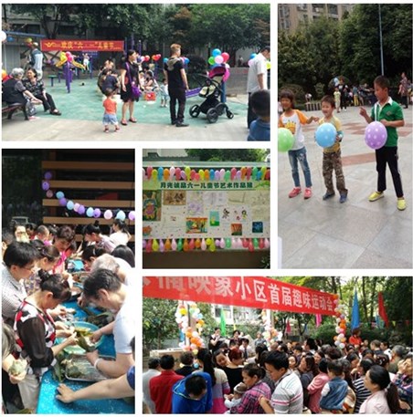 在云康园小区露天广场,工作人员精心为小朋友挑选了一部电影《捉妖记》,萌萌的胡巴吸引了百余名孩子和家长到现场观看。月光诚品项目在小区成功举办了儿童画展,工作人员提前组织和宣传,很快就收到了孩子们的“杰作”,题材丰富、形式自由,充满了天真童趣和生活气息。除此之外,端午节前,康郡客服中心还组织举办了“浓情端午·你我共包爱心粽”主题活动,设有包粽子单人赛和家庭赛比赛项目,大人孩子一同参与,还设置有“三足摘粽子”游戏和知识问答环节,小区业主都踊跃报名参与,多包多得,又实惠又有意义,让参与活动的业主们乐开了花。