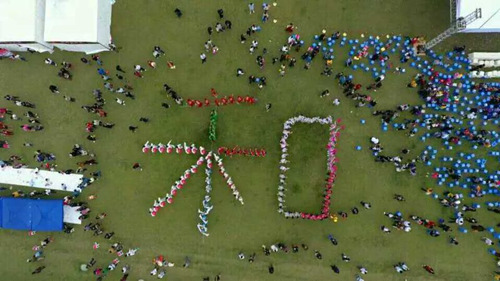 活动的最后,千名业主一起拼出了一个大大的“和”字,表达了对保利物业以及对自己将来生活的美好期望。