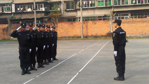 上午9点钟各项目秩序维护队队长、队员陆续到达成通小区篮球场进行操练,准备以良好的精神面貌、专业的军事技能迎接下午的比赛。