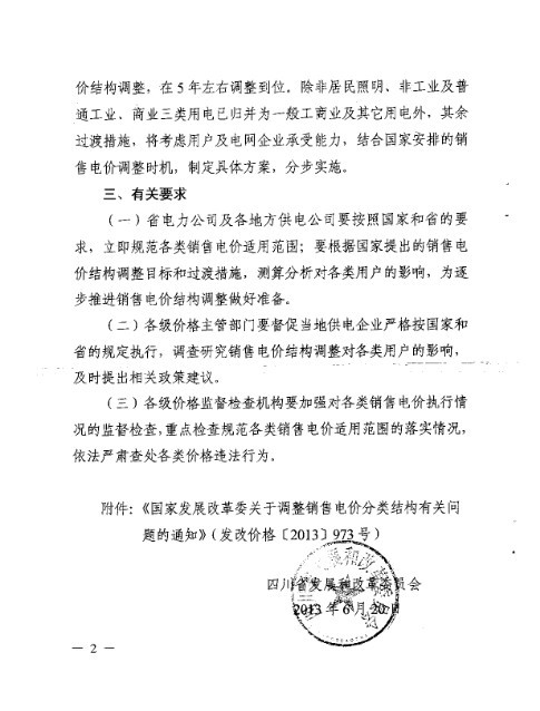 国家发展改革委关于调整销售电价分类结构有关问题的通知