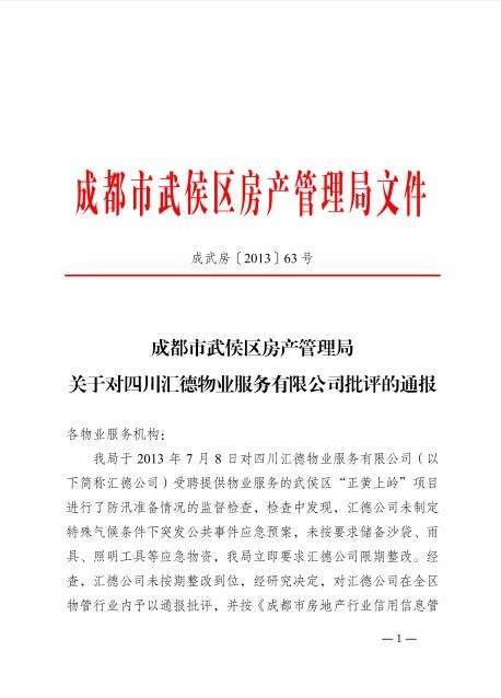 上一条:关于上报物业管理区域内涝灾害情况的紧急通知 下一条:关于给予成都合力物业服务有限公司处理的通报