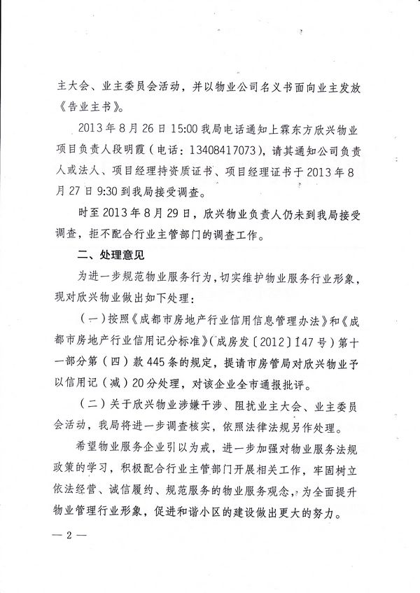 上一条:关于进一步加强中秋节、国庆节期间物业管理区域安全工作的通知 下一条:关于对成都三和佳物业服务有限公司的通报