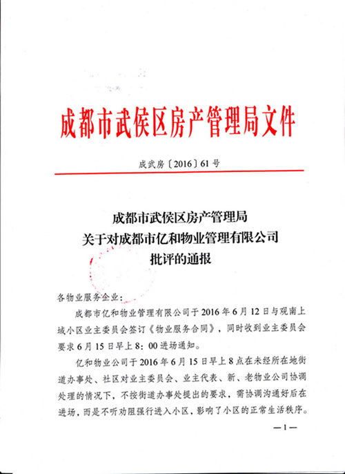 上一条:关于对中海物业管理有限公司成都分公司信用加分的通报 下一条:关于举办成都市物业管理创新发展经验交流活动暨走近“2015年度成都市物业服务品牌企业”参观学习交流活动的通知